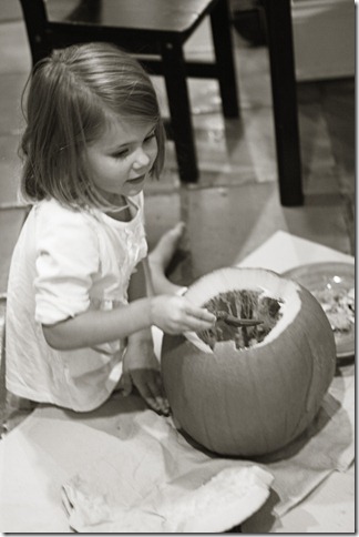 Some friends came over a few weeks ago bringing with them a huge pumpkin and glow in the dark paint. Needless to say, they were a huge hit. I later found out that our friend bought the pumpkin and rode home from the grocery store with the pumpkin in the basket on her bicycle!